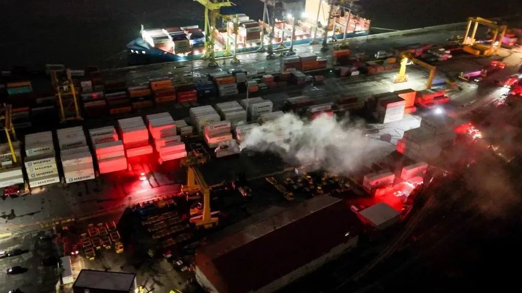 據消息人士稱, 一名值班人員發現一個 40 英尺集裝箱冒出濃煙,該集裝箱裝有用于電動汽車(主要是四輪車)的鋰電池。