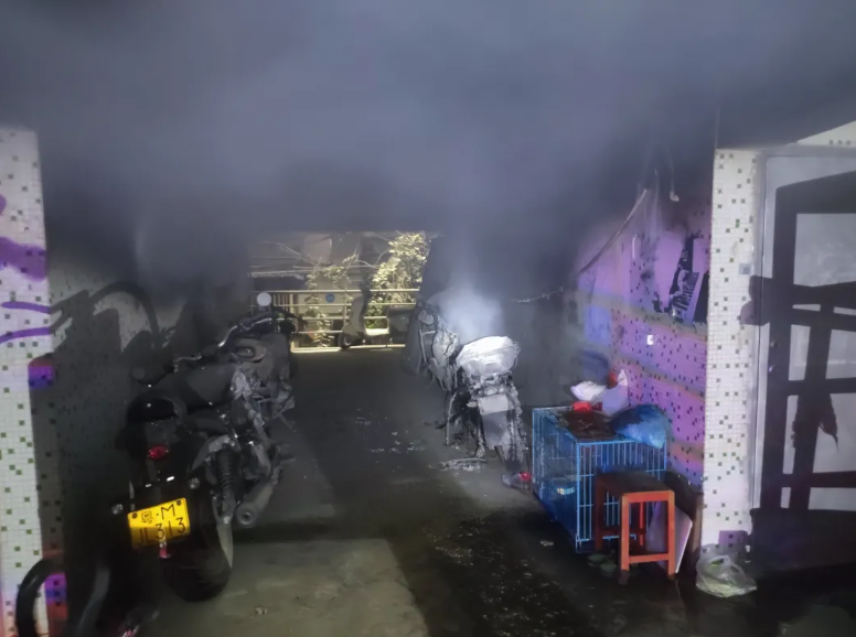 2024年9月14日晚,廣東深圳光明區(qū)一小區(qū)專用車房走道內電動自行車著火。