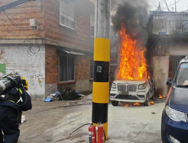 據貴陽消防消息,近日,貴州貴陽市南明區一房屋前的兩輛車突發起火,消防接警后,立即趕赴現場處置。