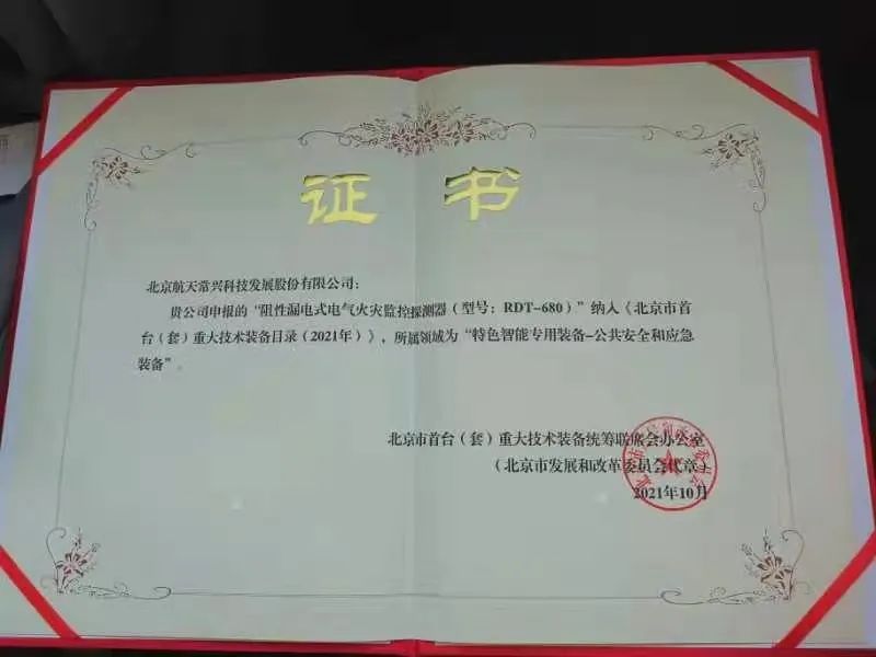 2022年3月4日,中國政府采購網公布了航天常興成功中標北京黃村鎮智慧電氣火災監控系統改造項目。作為該項目唯一一家中標企業,航天常興擁有無可比擬的競爭優勢。在北京市首批首臺(套)重大技術裝備授牌儀式中,航天常興攜大國重器脫穎而出。航天常興是電氣火災監控領域唯一一家首臺(套)入選企業,不僅技術過硬,而且得到了政府部門的高度認可,為我國經濟高質量發展樹信心、添動力。