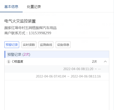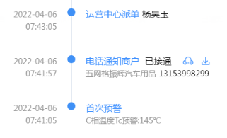 接收到此預警后中心值守人員立即撥打此商戶電話,通知該商戶業主,告知商戶線纜溫度異常過高具有重大安全隱患,請其立刻停止大功率用電器并斷電,并讓該業主立刻通知電工前往處置,隨即派單中心巡檢人員,讓其立刻前往現場復核處置該預警。