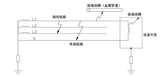 接地故障和帶電導體間的短路線路負載過重是電氣火災的基本成因,電氣火災中的接地故障指的是帶電導體與地面的短路,如下圖所示: