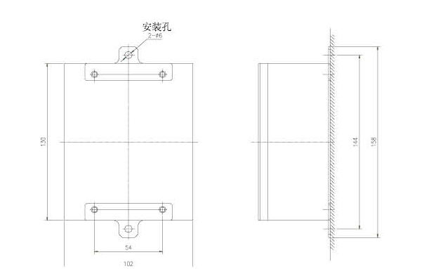 以模塊式電氣火災監控探測器為例,按照下圖安裝尺寸在所需安裝方位或配電箱壁上下鉆孔,用探測器所配套的卡扣和螺釘固定即可。也可以選擇標準導軌安裝。