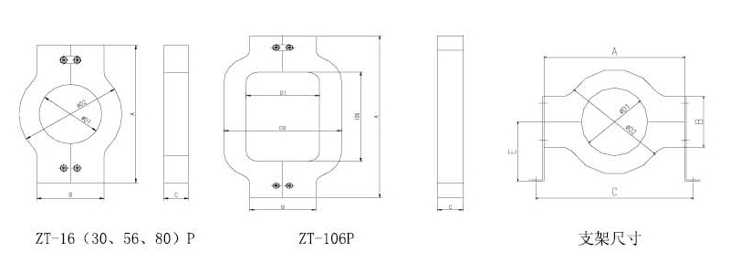 對插式剩余電流互感器外形及固定支架尺寸圖