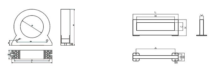 對插式剩余電流互感器可以用尼龍扎帶直接固定于所使用區域線纜上,也可以把對插式剩余電流互感器直接固定于配電箱體上。對插式剩余電流互感器的配件中有安裝箱體固定支架,支架式安裝形狀尺寸如下圖: