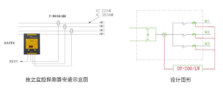 電氣火災監控探測器安裝示意