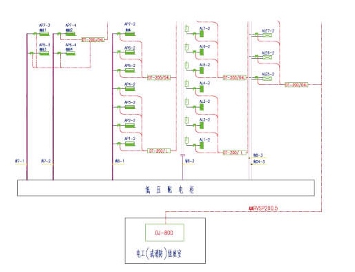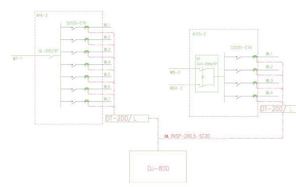 在配電箱系統圖的電纜出線端,安裝監控探測器的設計圖例如下所示: