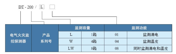 2.1 電氣火災監控探測器型號表示方法
